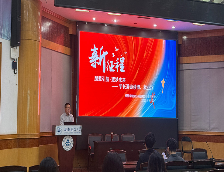 本网讯 秋意渐浓,初心始燃。为更好地帮助24级的研究生们明确未来学习科研方向,9月20日上午,在建树楼报告厅举行了优秀学长学姐交流主题班会。四位在就业、读博、考编等不同领域取得突出成绩的优秀学长与大家面对面交流,为同学们搭建起“听过来人说、走更清晰路”的成长桥梁。会议由学院专职组织员、24级研究生辅导员高德龙主持。