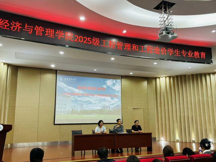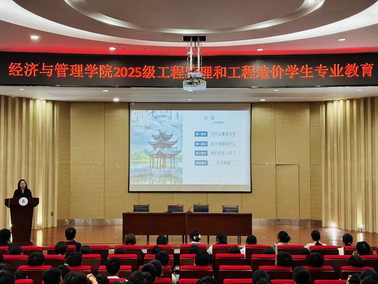 本网讯 2025年9月28日上午,工程管理系在金寨路校区图书馆报告厅举办2025级工程管理与工程造价专业新生入学教育暨学业导师见面会。经管学院副院长蔡弘、工程管理系主任杨苏、2025级新生学业导师刘家林、刘艳与全体2025级新生齐聚一堂,共同开启新学期的第一课。活动由学院副院长蔡弘主持。