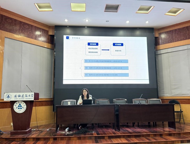 杨苏教授以“从动机到行动:基于动机、认知与经验的建筑工人安全行为机制研究”为题,以建筑工人安全行为的心理机制为核心,基于能力–动机–机会理论(AMO)与自我决定理论(SDT)揭示动机对安全行为的内在驱动机制,进一步结合自我验证理论(SVT)与社会认知理论(SCT),探讨认知偏差与事故经验对安全行为的影响路径。报告从动机、认知与经验三个维度系统阐释建筑工人安全行为的形成机理,为施工现场安全管理、行为干预与组织培训提供理论依据与实践启示。