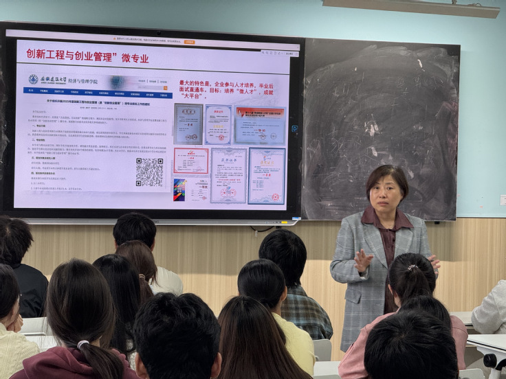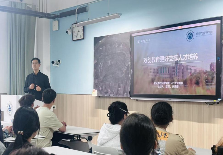 历史的厚重积累,应切实转化为迈向未来的强大动能。在“开学第一课”的收官阶段,学院紧扣“双创教育更好支撑人才培养”这一核心主题,教学副院长蔡弘从顶层设计层面出发,系统且全面地阐释了学院双创工作的目标与方向,介绍了学校为支持学生项目所构建的全方位政策与服务保障体系,向新生清晰传递了学院“全力支持、全程服务”的明确导向与坚定决心。学院创业战略中心主任朱素媛具体介绍了保障双创教育落地实施的配套举措,解读了学院开设的“创新工程与创业管理”微专业,为新生开展了一场着眼未来的动员活动,为他们的成长注入强劲的创新基因与实践勇气。