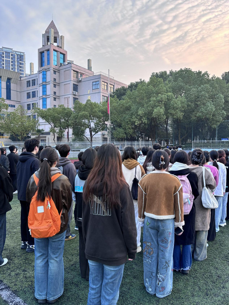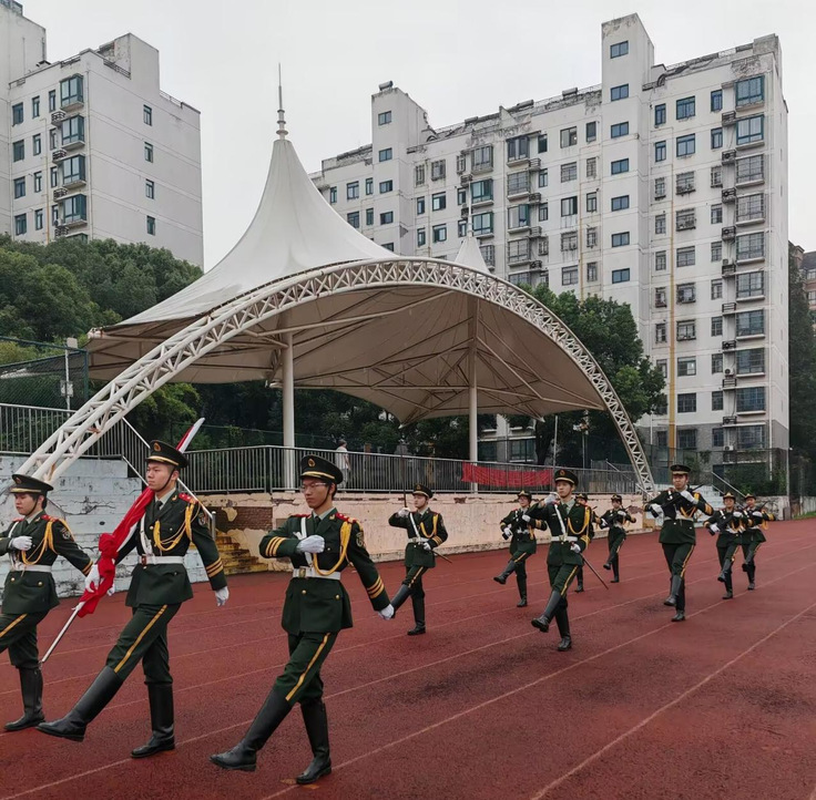 清晨六时四十分,晨光初露,全体同学已在操场整齐列队。国旗护卫队迈着铿锵有力的步伐,护卫着五星红旗步入会场。在雄壮的《义勇军进行曲》中,鲜艳的五星红旗冉冉升起,迎风飘扬。全体同学面向国旗肃立行注目礼,齐声高唱国歌,用庄严的仪式表达对祖国的热爱与敬意。仪式结束后,学院开展了“我和国旗合个影我为建大添光彩”主题活动,同学们用镜头记录下与国旗同框的珍贵时刻,将爱国主义教育从仪式现场延伸至实践环节,通过沉浸式体验增强教育感染力。