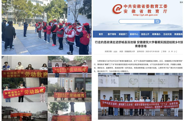学院坚决推动劳动教育与专业教育深度融合,将其打造为锤炼学生实践能力与社会责任感的关键环节。组织师生开展为期100天的城市完整社区建设专项调研,形成的专项报告获合肥市房产局高度认可,真正实现了“在服务中学习,在研究中成长”。此外,学院推动志愿服务常态化、品牌化,2025年首次组织学生参与合肥市消防安全“窗帘之约”等特色志愿活动。五年间,学院“学雷锋”“我为师生办实事”等志愿服务队累计开展服务80余次,服务时长超4000小时,让奉献精神在躬身实践中内化于心、外化于行。学院将暑期“三下乡”社会实践作为一堂“行走的思政课”精心打造,引导青年学子在广袤乡村中受教育、长才干、作贡献,多次获得市级表彰,并被主流媒体报道。