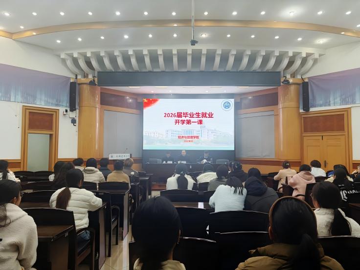 本网讯 春风浩荡,征途在即。为深入贯彻落实国家高校毕业生就业工作决策部署,扎实推进就业“一把手”工程,助力2026届毕业生认清就业形势、明确求职方向、提升就业能力,近日,经管学院党委书记潘和平以“抢抓春招黄金期,点亮就业新征程”为题,为2026届毕业生讲授“就业开学第一课”。