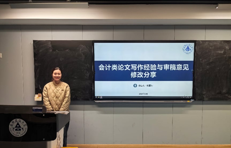 学术成长路上,朋辈同行更具力量。2024级会计专业钱雪婷同学以“会计类论文写作经验与审稿意见修改分享”为主题,围绕论文选题构思、数据收集整理、撰写规范把控及投稿返修技巧等核心环节,进行了全流程、全方位的细致剖析,清晰拆解了论文写作中的重点难点。结合自身参与MPAcc案例大赛的实战经历,她分享了参赛过程中的思考与收获,鼓励在场女生在科研道路上勇于尝试、勤于打磨,在反复修改中锤炼能力,在持续探索中收获成长。