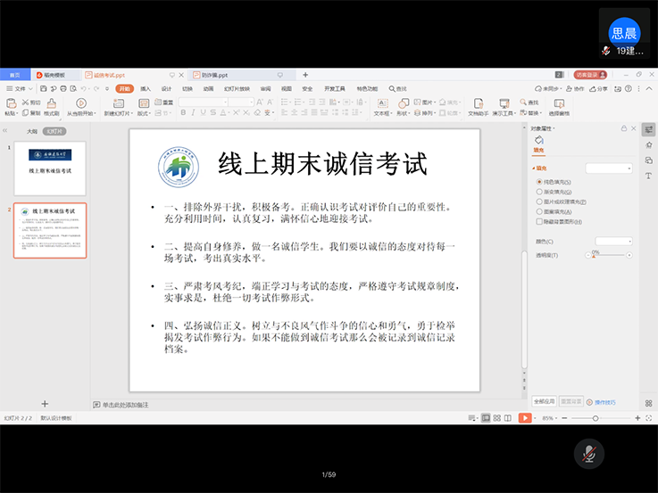 本网讯 期末临近,暑期将至。近日,环能学院辅导员召开主题班会,就疫情期间线上考试诚信和疫情期间居家安全进行了布置。