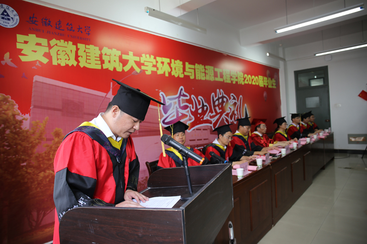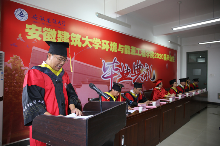 本网讯 6月30日,环能学院2020届毕业生毕业典礼暨学位授予仪式在理化楼308会议室举行。校党委副书记、校长孙道胜出席典礼,环能学院负责人、专业导师、全体辅导员、2020届毕业生代表参加典礼。