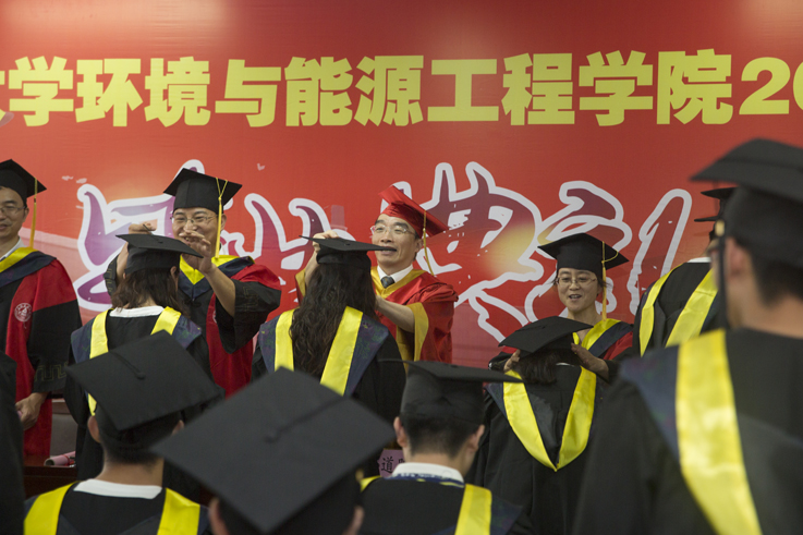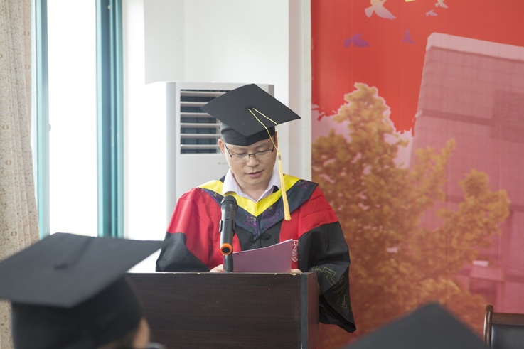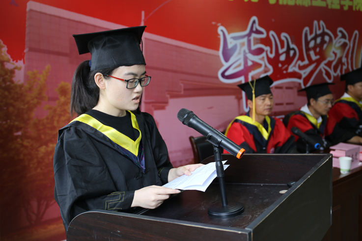 仪式在庄严雄壮的国歌声中拉开序幕,院党委书记王媛宣读省级、校级优秀毕业生表彰文件,与会领导与老师为获得表彰的学生颁发获奖证书并合影留念,副院长解华明宣读了授予学士学位文件,毕业生们依次登台,孙道胜等为同学们正冠拨苏、授予学位。副院长朱曙光及教师代表唐建设分别致辞,表达了对全体毕业生的祝贺和祝福,希望他们用努力证明自强、用毅力成就梦想、用拼搏成就辉煌。