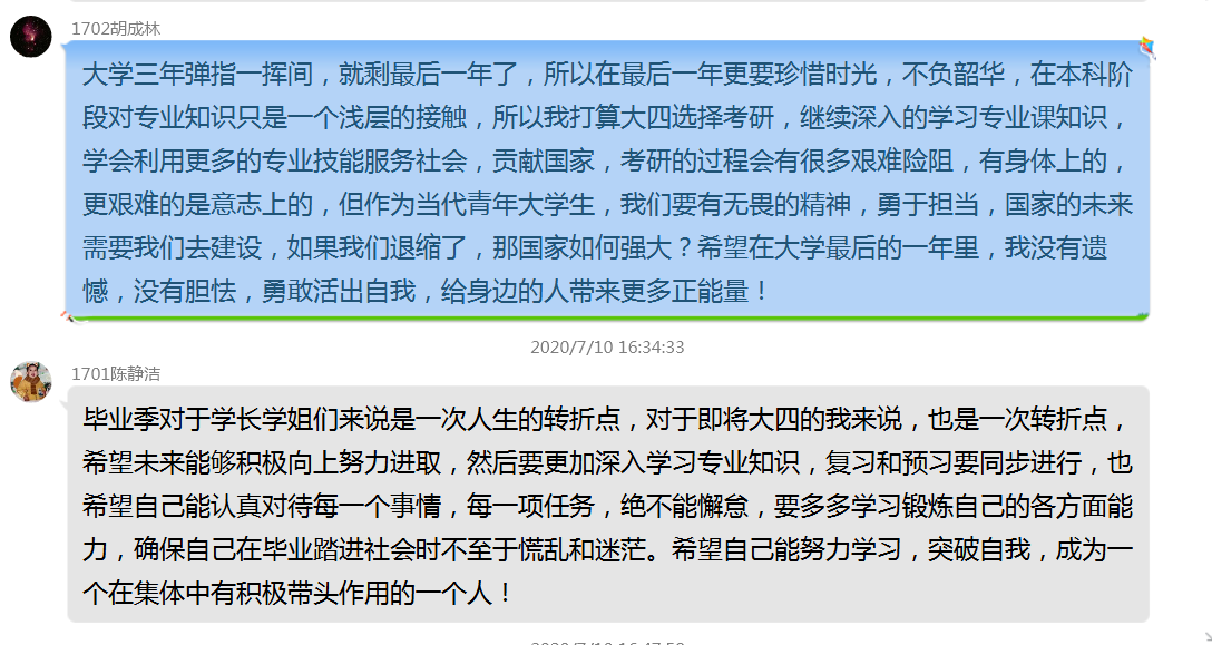即将进入大四的2017级学生党员表示,在面对未来生涯选择选择中,一定会始终牢记入党初心、加强党性锤炼、擦亮先锋底色,努力学习,增长本领,把个人的发展融入到国家的发展需要中去。(作者:徐明露;审稿:胡志龙)