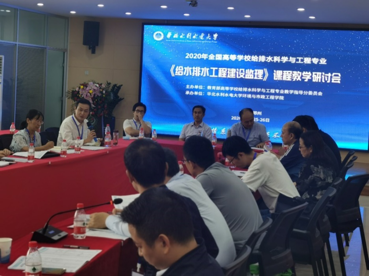 本网讯 2020年9月25至26日,由教育部高等学校给排水科学与工程专业教学指导委员会(简称教指委)主办,华北水利水电大学承办的全国高等学校给排水科学与工程专业《给排水工程建设监理》课程教学研讨会在河南省郑州市召开。环能学院市政工程系胡昊、余丽、杨厚云和王金花4位老师参加了研讨会。