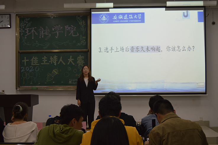 本次比赛共有14组成员参赛,选手进行三分钟的自我能力展示,模拟主持现场等环节。在考验选手的临场应变能力的提问环节,选手们思维敏捷,从容应答,精彩不断。整场比赛活动秩序井然,氛围激烈,经过激烈角逐,2020级环境生态工程专业郑妍夺得本次大赛一等奖。