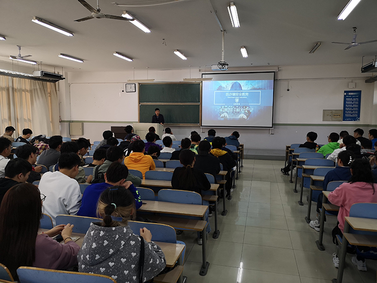 主题教育班会上,各专业辅导员以身边的实例,结合PPT,通过师生交流的方式,向同学们详细讲解了电信诈骗的常见内容方式,遭遇电信诈骗时采取的防范措施及应对方法。提醒告诫学生在进行涉及财产交易的行为时要提高警惕,擦亮眼睛,分辨防范不法分子的诈骗举动。