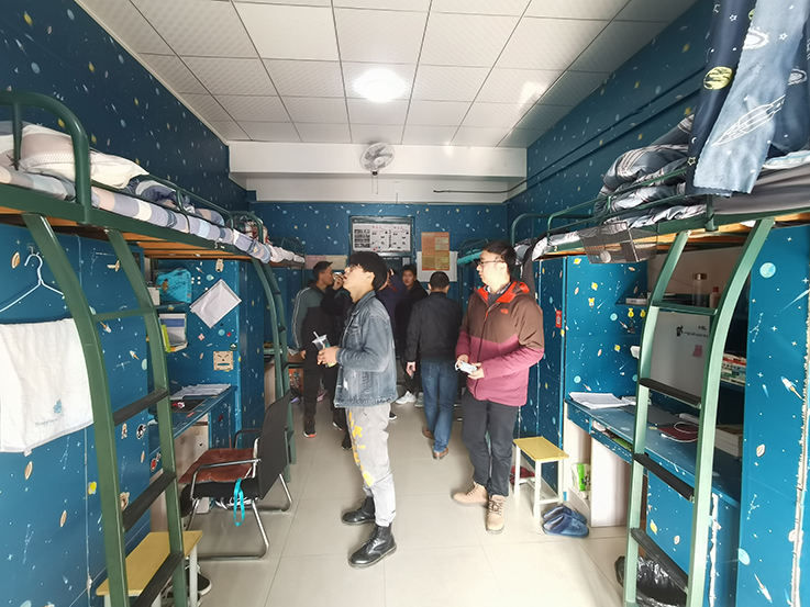 本轮比赛采用实地走访现场打分的形式,由辅导员带队进行现场走访评比。“点点滴滴,尽显本色”、“窗明几净,别有洞天”,不同的主题、风格和个性装饰展现了环能学子各具特色的寝室的风采,老师们对现场的布置和搭配等进行了详细点评,对同学们的积极参与给予了充分肯定。