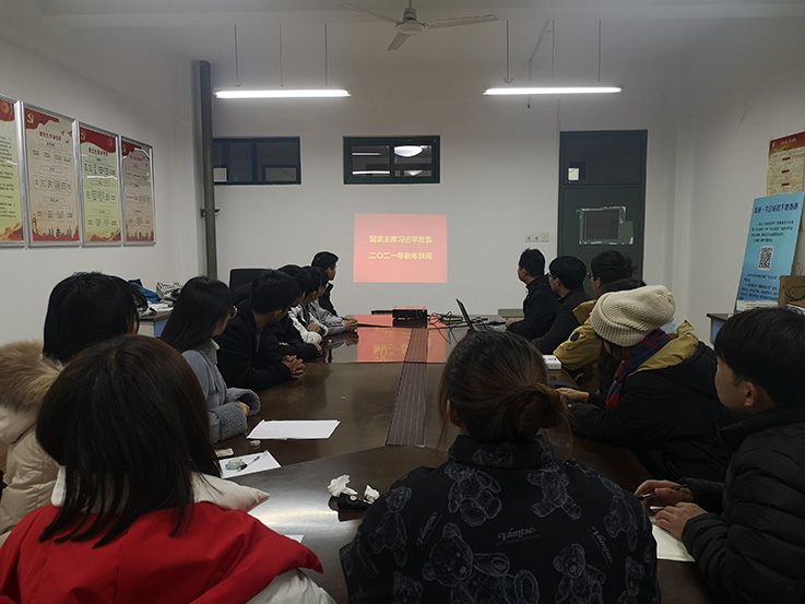 本网讯 1月5日,环能学院第二学生党支部在环能学院204会议室集中,观看国家主席习近平二〇二一年新年贺词视频,认真学习与回顾在2020年展现的中国精神及造就的中国奇迹。
