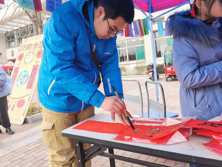 本网讯 为传承中华文化,喜迎传统佳节,近日,环能学院在南苑餐厅广场举行“猜谜语送春联”活动。