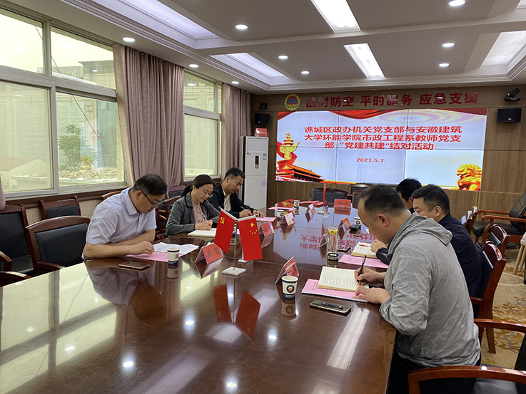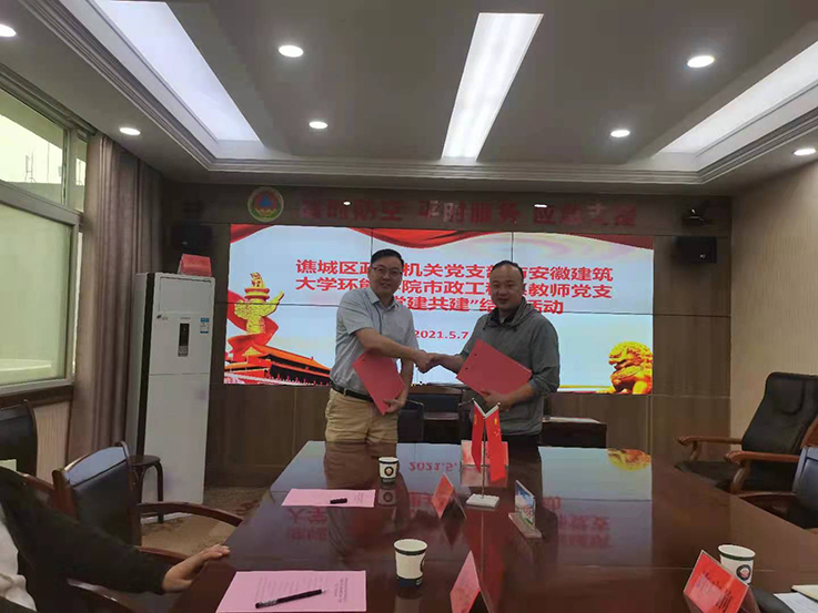 本网讯  5月7号上午,环能学院市政工程系教师党支部与亳州谯城区政府办公室机关党支部在谯城区政府三楼会议室开展“党建共建”活动。环能学院党委书记王媛,党委副书记胡志龙,市政工程系教师党支部书记黄健以及谯城区政办主任梁超,区直工委副书记许广前,区政办机关党支部书记张蒙,双方党支部党员代表参加结对仪式。