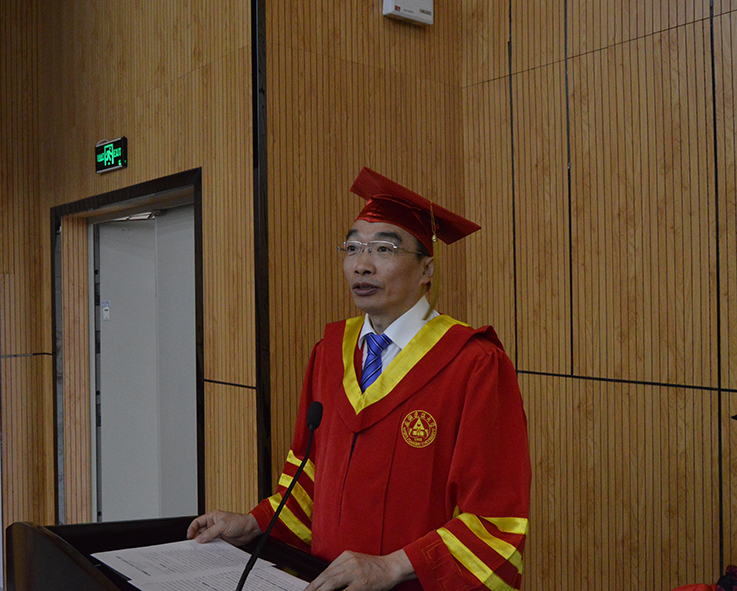 孙道胜代表学校全体教职员工对2021届全体毕业生的顺利毕业予以衷心祝贺,向所有为同学们的成长成才付诸心血的师长、父母致以崇高的敬意,勉励全体毕业生要砥砺品德,完善人格,像孩子一样,永远保持一颗纯洁、善良和无畏的心,修好“德行”这门人生必修课,在自我升华中破茧成蝶。要勤学善思,终身学习,秉持追求真理的热情,坚守探索知识的初心,做一个快乐的“读书人”。要敢为人先,开拓创新,锐意进取,砥砺奋进,为祖国的强大贡献更多的创新支持。孙道胜最后说:现在起到本世纪中叶,我国将实现第二个百年目标,这恰是各位同学风华正茂的年华,也是祖国强盛与同学们个人命运紧密交织的时代,希望各位同学带着这鲜红的烙印走向波澜壮阔的征途,全身心投身于中华民族伟大复兴的中国梦中,开创属于自己的美好的未来。(作者:吴明轩,丁俊,汪格格;审稿人:胡志龙)