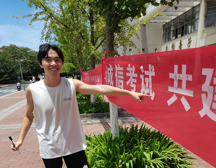 本网讯  为进一步加强诚信考试教育,严肃考风考纪、培养优良学风,6月21日,环能学院于大学生活动中心前举办诚信考试签名活动。