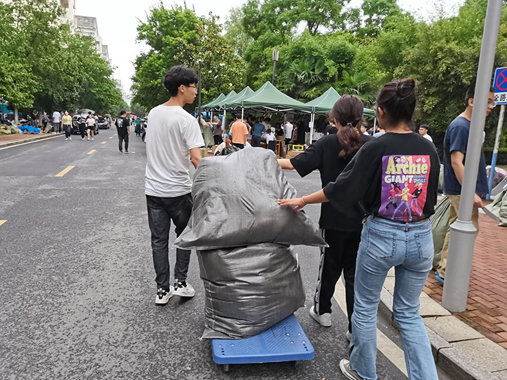 环能学院积极响应学校号召,在学生公寓七栋、八栋处设置服务点,安排学生志愿者值班和服务,准确掌握毕业生动态,解决毕业生离校问题。志愿者积极帮助毕业生打包行李,倡导文明离校,为环能学院2021届毕业生送去贴心周到的服务。
