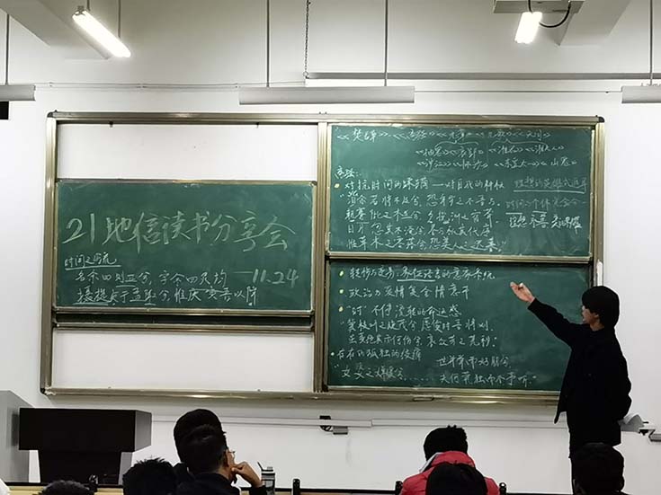 读书分享会上,同学们积极发言,黄幸远同学详细介绍了《楚辞·离骚》,在其引领下,同学们领略到屈原波澜壮阔的一生,感受到屈原对国家和人民的爱以及自身“路漫漫其修远兮,吾将上下而求索”坚定理想信念。陈洪平同学分享了《思想的天鹅》的读书心得,让同学们感受到了“沧桑而见美,见微而知著,无奈而通灵”。李琦同学分享了长篇爱情小说《月光变奏曲》,在分享交流中,同学们纷纷被小说治愈而美好的故事所打动,正确认识到人生的结果=能力×热情×思维方式。