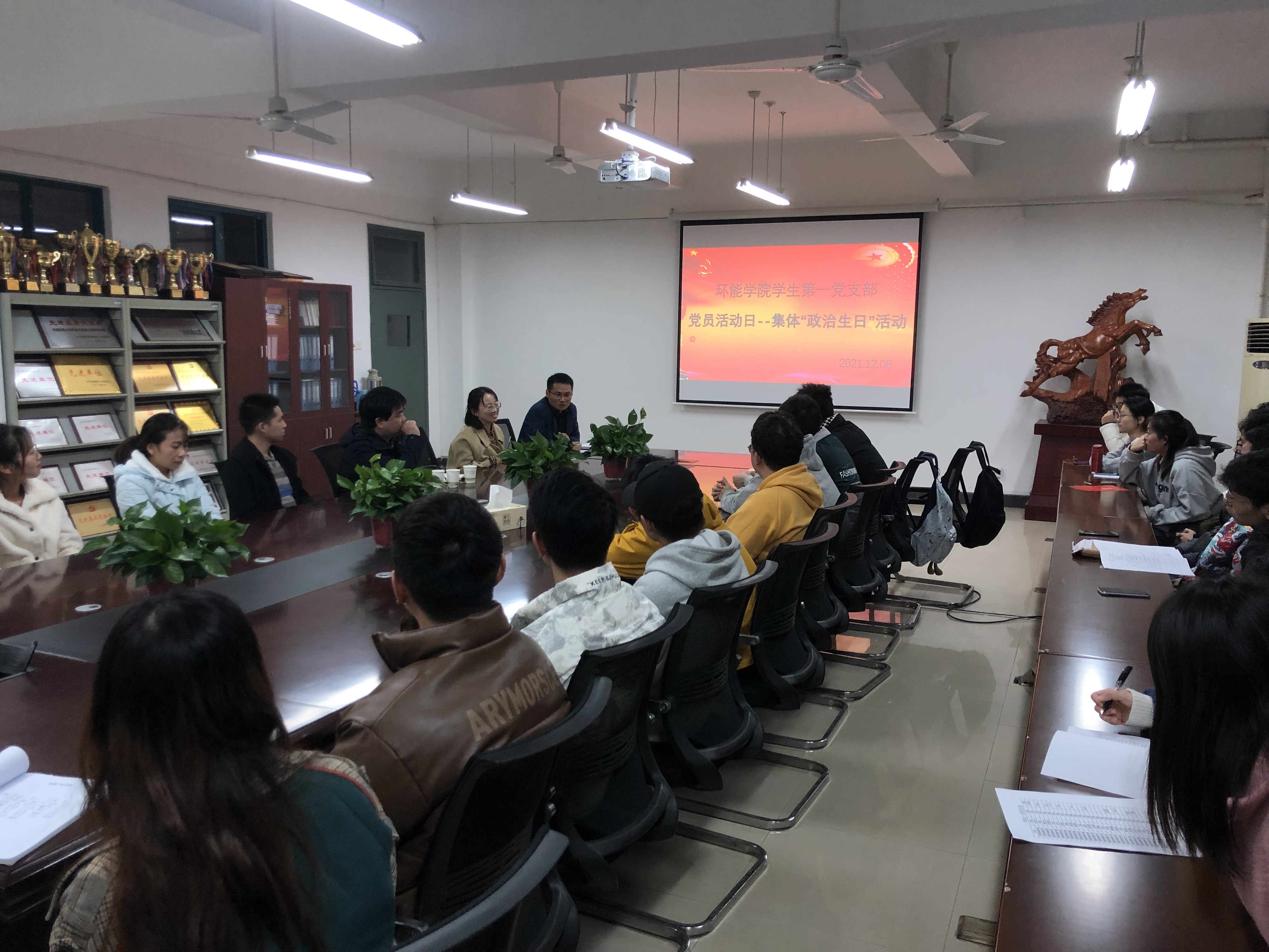 本网讯 为增强支部党员的责任感和荣誉感,让党员感受到组织的温暖关怀,切实提高党员的党性修养,12月8日,环能学院学生第一党支部为12月份入党的6名党员集体过“政治生日”。支部书记朱志伟主持活动,支部34名党员参加大会。