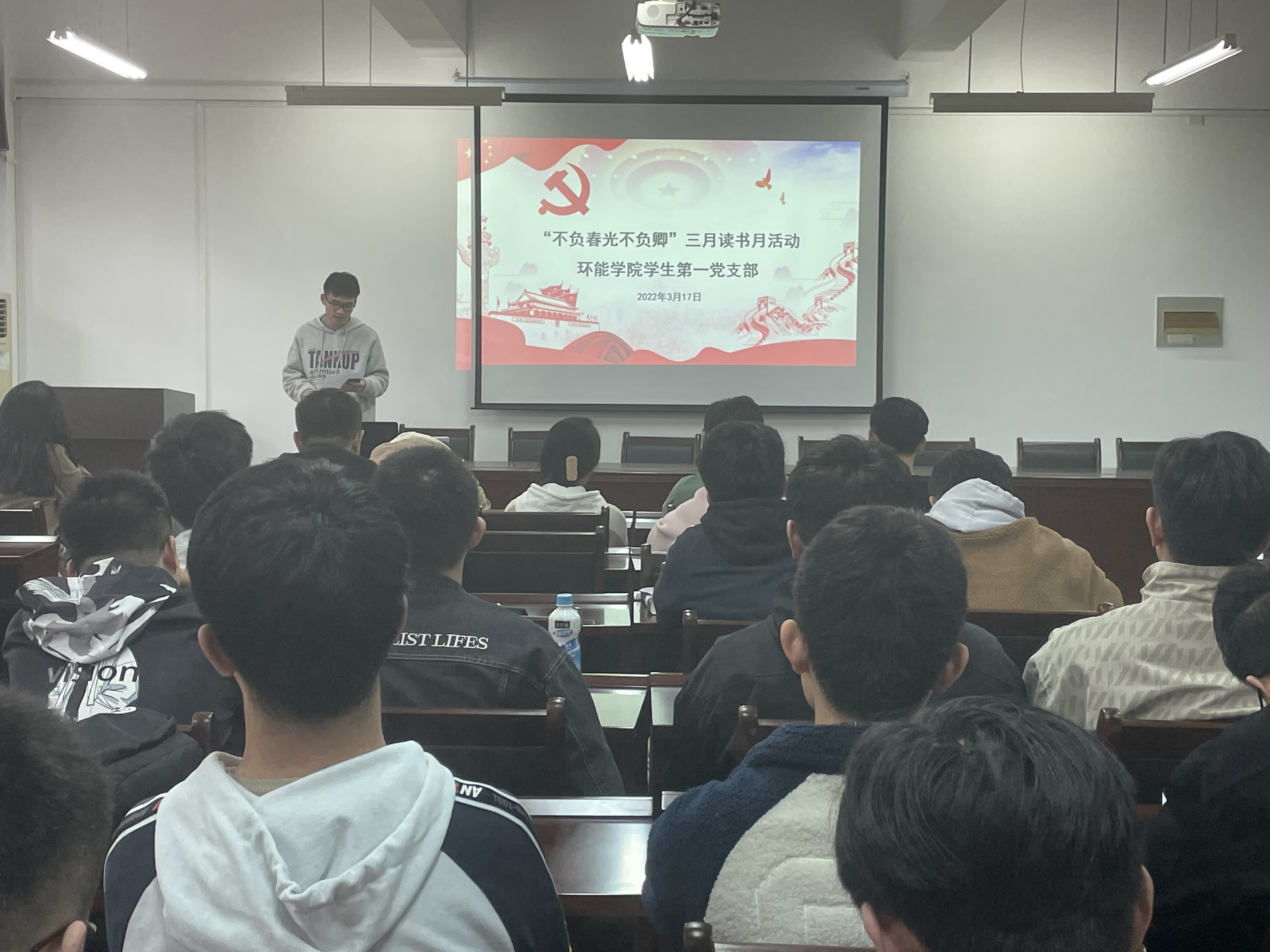 本网讯 为进一步推进学习型党支部建设,营造良好学风氛围,3月17日,环能学院学生第一党支部开展“不负春光不负卿”读书分享会活动。