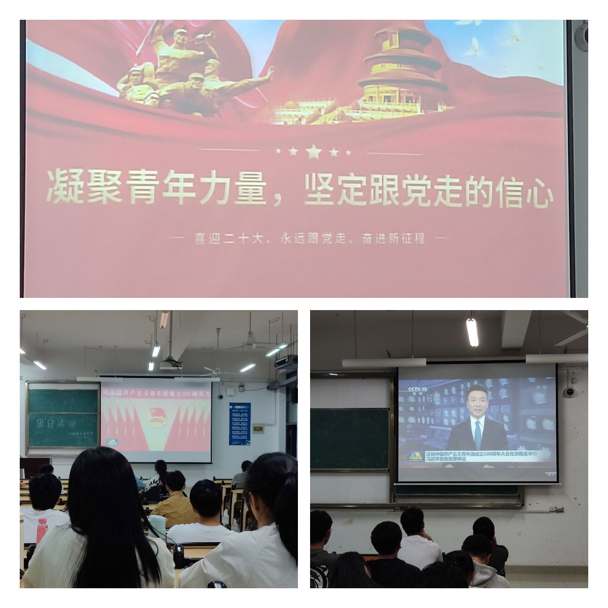 在五四青年节和中国共产主义青年团成立100周年即将到来之际,习近平总书记到中国人民大学考察调研,出席庆祝中国共产主义青年团成立100周年大会并发表重要讲话,对广大青年提出殷切期望。近日,2021级环境工程和给排水专业各团支部开展了“凝聚青年力量,坚定跟党走的信心”专题学习会。会上播放习近平总书记到中国人民大学调研视频和出席庆祝中国共产主义青年团成立100周年大会并发表重要讲话视频,在观看视频后,各团支部团员在辅导员带领下结合近期阅读学习《习近平与大学生朋友们》开展本次专题学习会体会分享。大家表示作为新时代的中国青年,我们生逢其时当奋斗其时,通过深入学习习近平总书记重要讲话精神,牢记党的教诲,坚定不移听党话、跟党走,将学习与实践结合起来,在学思进取中展现青春奋发有为的精彩。