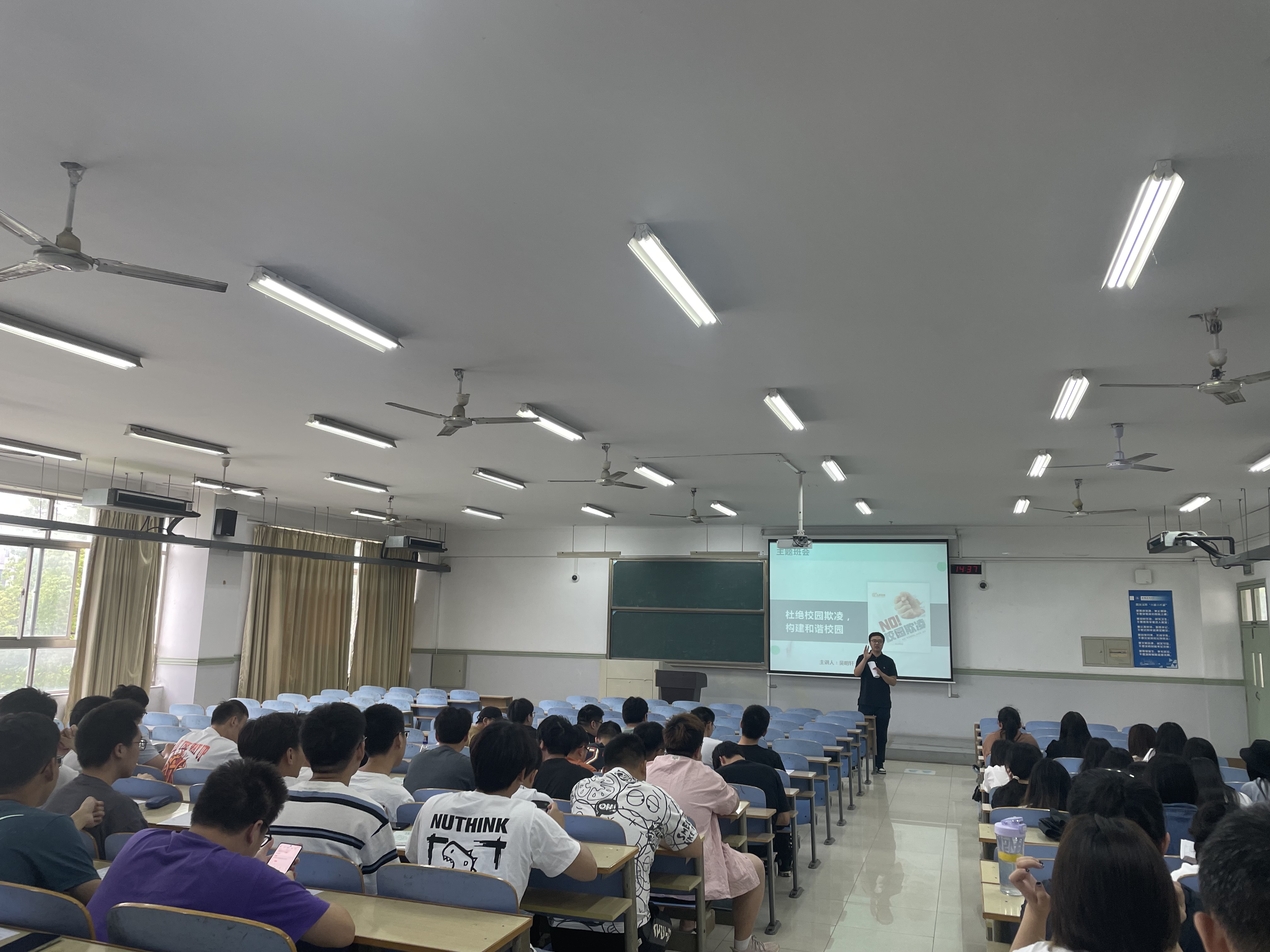 为增强学生法治意识,环能学院组织辅导员开展防校园暴力主题班会,利用视频、PPT等形式,让同学们知道了校园欺凌的性质,明白了遭遇校园欺凌时的危害和应对措施,增强了学生远离黑恶、预防犯罪、遵纪守法的意识。