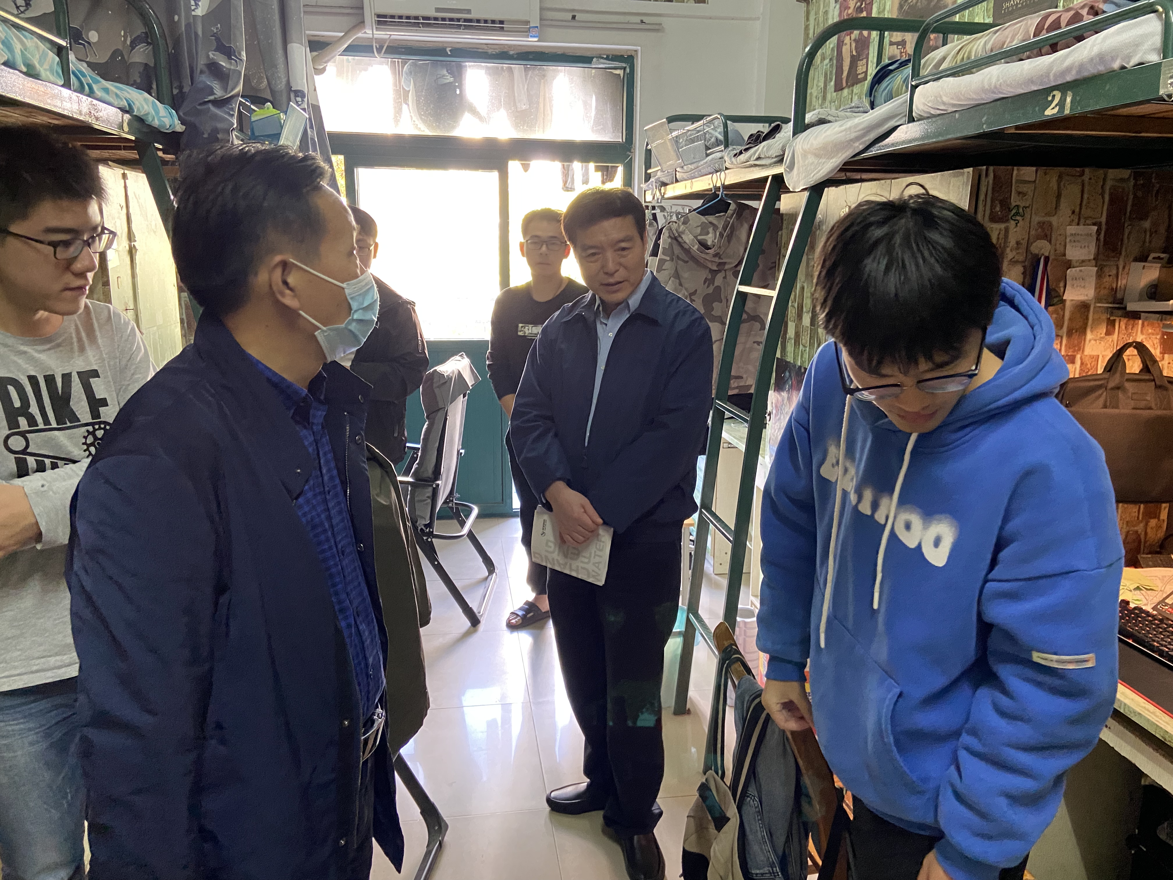 午餐后,黄显怀来到环能学院学生宿舍,查看学生住宿环境,了解他们在生活上的难题和思想动态,鼓励学生多与老师沟通交流,有问题主动寻求老师的帮助。