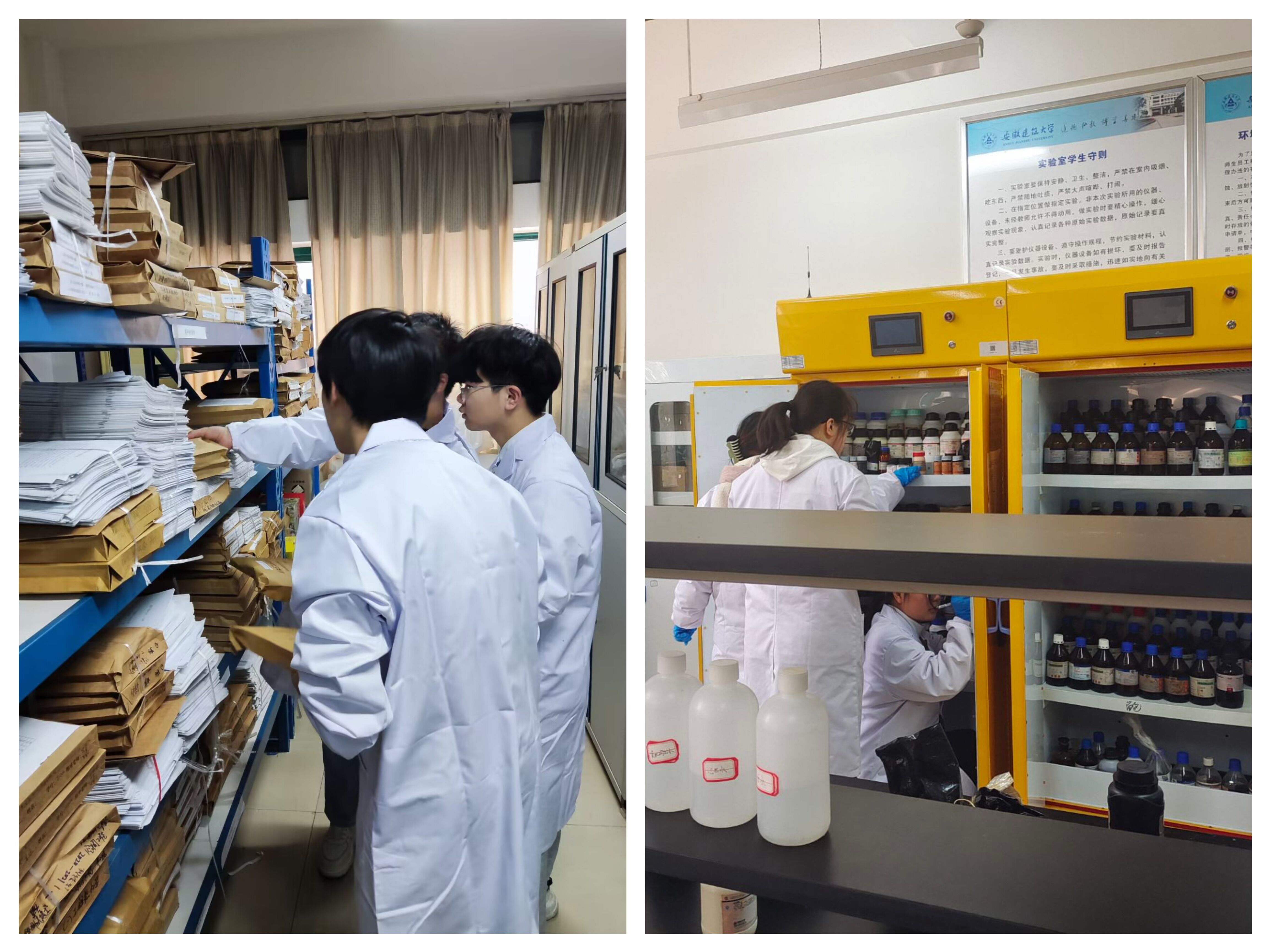 活动期间,支部书记韩三青向学生介绍本次党日活动的流程和注意事项,实验室教师党员马骏向学生讲解实验室安全防护与事故应急处置等内容,支部党员代表向低年级学生介绍紫外分光光度计、pH计和离心机等实验室常用仪器的使用方法。随后,学生被分成两组,进行了讨论交流。在主题活动中,党员们还分别进行了实验室药品统计与实验报告整理,切实参与到实验室工作中,把实验安全知识落实到细节处。