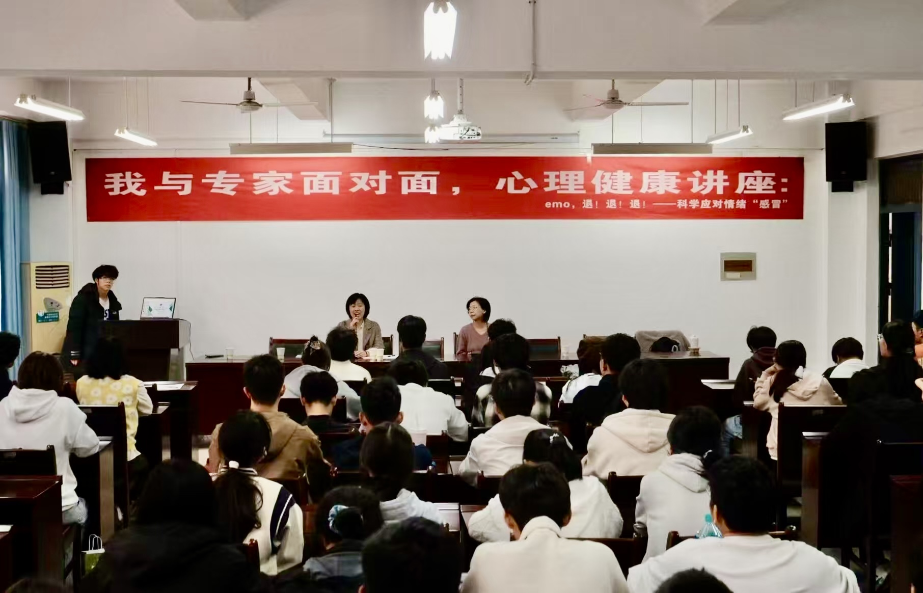 揭牌仪式结束后,环能学院二级心理辅导站在徽文楼202会议室组织开展了第二十二期“我与四院专家面对面”活动,特邀合肥第四人民医院专家郑爽医生,为学生开展“emo,退!退!退!—科学应对情绪‘感冒’”主题讲座。郑爽凭借丰富的临床经验,从情绪感冒的定义、常见表现及成因展开讲解,还分享了身体扫描冥想、自然沉浸疗法、渐进式肌肉放松等获取积极情绪的实用方法,更介绍了健康生活方式、社交支持系统等情绪调节技巧。现场同学们听得专注投入,遇到共鸣处不时发出赞同的感叹,在最后的互动环节也踊跃分享自己的感受与疑问,氛围格外热烈。