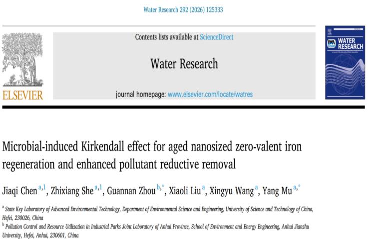 本网讯 近日,环境与能源工程学院博士后周冠男以共同通讯作者身份在环境领域顶级期刊《Water Research》(IF=12.4,中科院一区TOP)发表题为《Microbial-induced Kirkendall effect for aged nanosized zero-valent iron regeneration and enhanced pollutant reductive removal》的学术论文。安徽建筑大学为共同通讯单位。