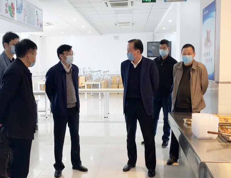 4月9日,校党委副书记、校长孙道胜,副校长蔡新立一行到后勤服务集团实地检查指导学生食堂、公寓、医院疫情防控各项准备工作。