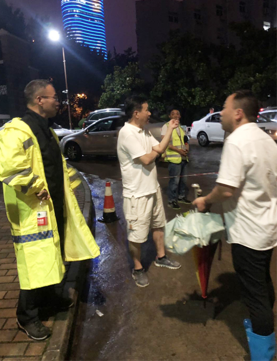 6月27日,合肥市突降强暴雨,持续强降雨造成北校区多处路面积水,后勤服务集团总经理戴前宏及相关部门负责人第一时间到达现场,在实地察看汛情后,要求后勤物业等部门及驻校物业公司迅速展开抢险排水工作。