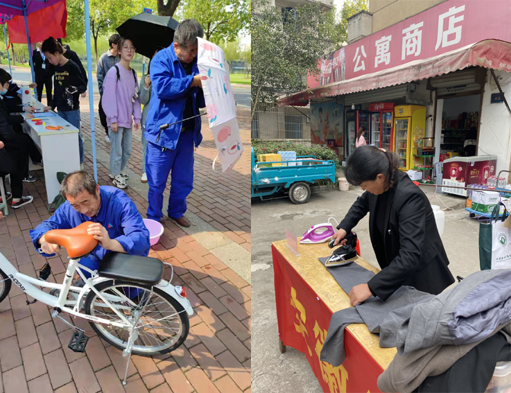 活动现场,同学们各自带着需要熨烫、缝补的衣物来到现场,物业阿姨们各显神通,娴熟地解决了同学们的各种问题;维修师傅们也不甘落后,热心的为同学们修理自行车、台灯、雨伞等各种物品。