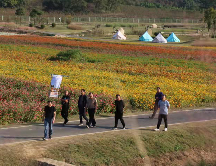 银屏山的怪洞、异木让大家惊叹大自然之神奇,仙人洞内盘桓曲折、怪石嶙峋、钟乳纷呈,宛若地下迷宫,千年“九丫树”更添神奇色彩。三瓜公社里菊花盛开,俨然一片花海,在这里,不仅能欣赏到田园风光,更能感受到巢湖地区5000年的农耕民俗文化,体验江淮地区农村的真实生活场景与农家生活情趣。大家放飞心情,在欢身笑语中健步游走,漫步山间、花海,相互拍照,驻足留影,亲近大自然,心情轻松愉悦,格外舒畅。