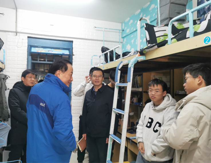 检查组一行深入学生公寓,对宿舍用电安全进行仔细检查。蔡新立与学生亲切交谈,告知学生要遵守校规校纪,尤其在用电方面要引起高度重视,严禁在宿舍内使用大功率电器。