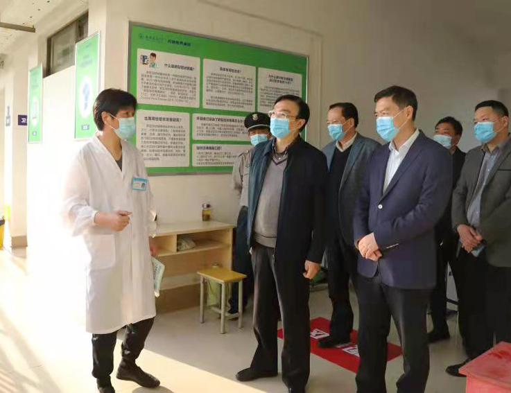 本网讯 3月11日上午,学校召开大会全面部署疫情防控工作。下午,校党委书记孙道胜、校长黄显怀、副校长蔡新立等一行在有关部门陪同下,深入一线检查指导疫情防控工作。