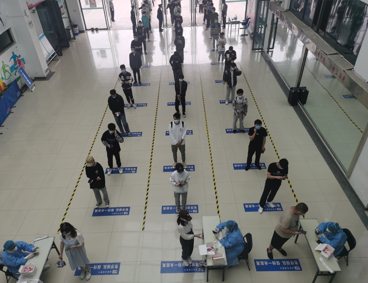 检测期间,师生员工按照既定时间错峰分批前往,现场佩戴口罩,扫码登记,即采即走,检测工作井然有序、高效快速,截止13日晚累计检测师生员工4410余人。