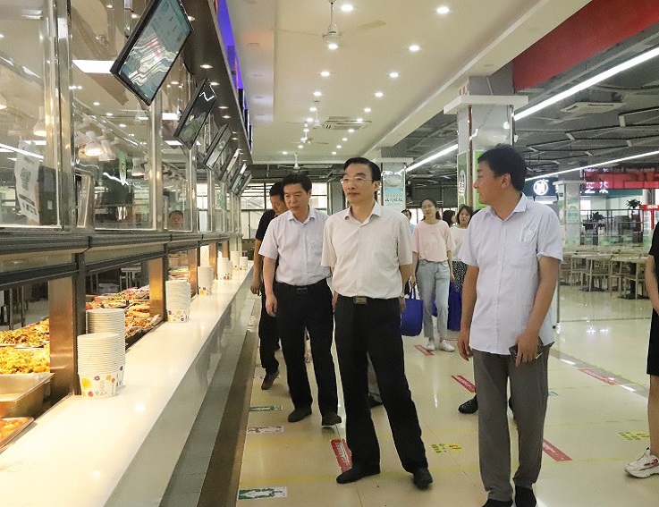在施工现场,孙道胜、黄显怀听取后勤集团、工程施工单位暑期维修工作情况汇报,对施工安全、工程进度、施工质量认真询问和细致检查。在食堂,校领导仔细查看食堂维修改造装修情况,并就饭菜品种、价格、质量对后勤集团和餐饮单位提出高标准和严要求。