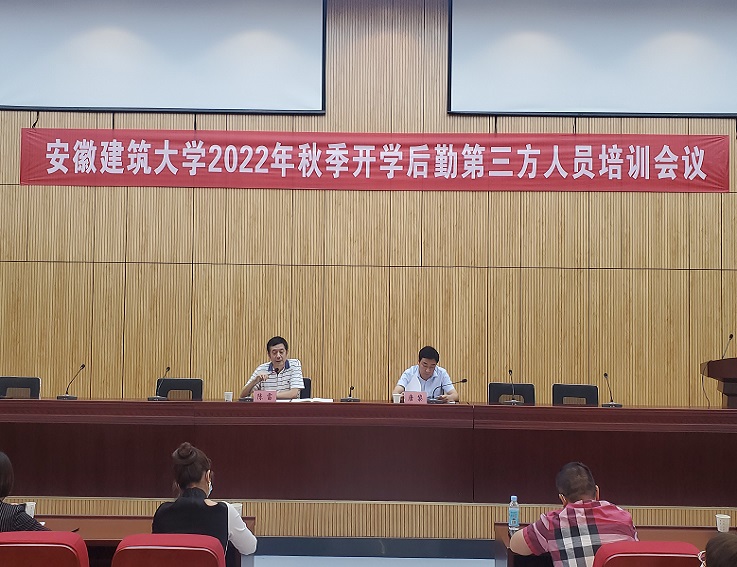 本网讯 8月25日,后勤服务集团在南校区实训综合楼报告厅召开2022年秋季开学后勤第三方人员培训会议,后勤服务集团领导班子、各中心负责人及各驻校服务企业负责人、项目经理参加会议。