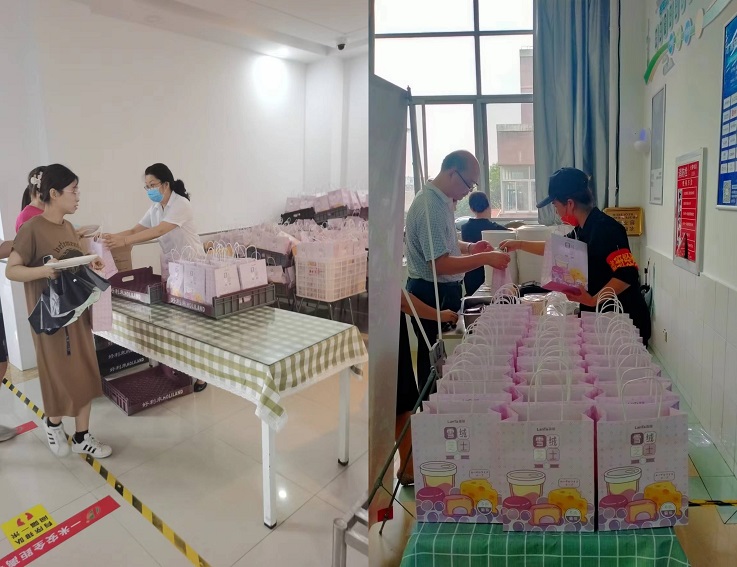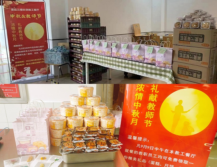 教工餐厅为当日在餐厅就餐的教职员工精心准备了精美礼袋,一个蛋糕、一枚月饼、一张祝福卡,为老师们送上诚挚的节日祝福和暖心的节日问候,感受双节同庆的温馨氛围。