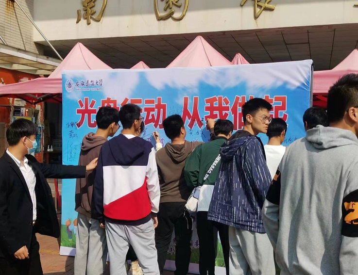 活动现场,学生志愿者和餐饮员工纷纷在签名墙上签字,积极表示要成为“光盘行动、从我做起”活动的参与者、践行者、监督者,将节约粮食、制止餐饮浪费的活动精神转化为实际行动。