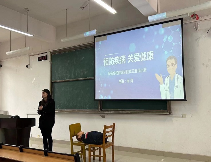 本次讲座主要针对突发事件的应急处理、健康生活方式、心理健康疏导、重大疾病预防和常见职业病改善等方面展开讲解。周老师通过知识讲解、模拟示范、互动问答等通俗易懂的形式,重点讲解了心肺复苏、海姆立克急救等急救知识,以及高血压等常见疾病的危害和预防知识,倡导大家养成健康的生活方式,强调了防大于治的健康理念,培养自救互救和自我保护能力,进一步唤醒大家对健康安全的认识。