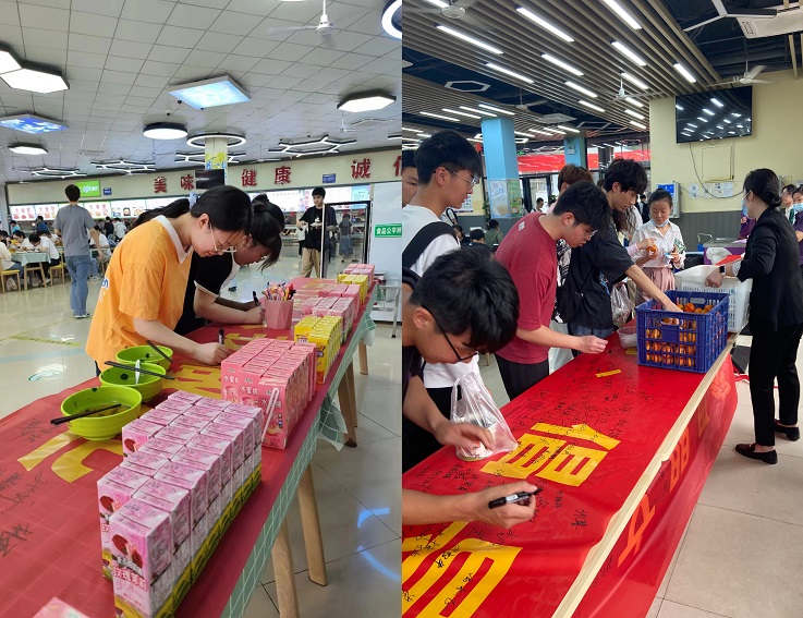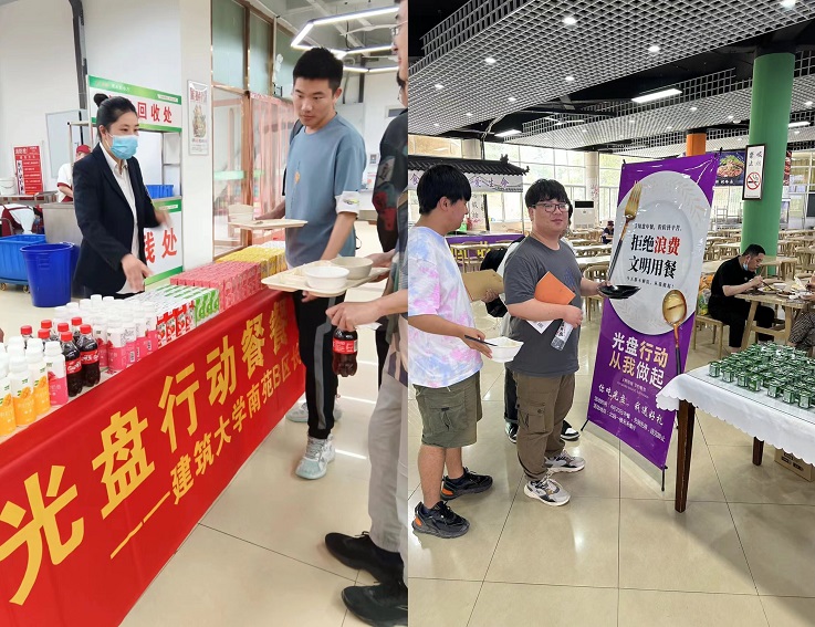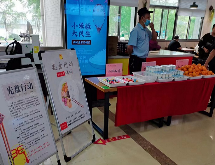 宣传周期间,后勤服务集团大力营造制止餐饮浪费宣传氛围,在各食堂就餐大厅内,通过悬挂横幅、张贴海报、电子投屏播放等形式进行制止餐饮浪费宣传;在餐具回收区域开展光盘送水果、酸奶、小礼品等活动;在打菜窗口实行半份菜、小碗菜、拼菜等供餐方式,积极营造“浪费为耻,节约为荣”的校园氛围。通过开展多种形式活动引导师生践行“光盘行动”,制止餐饮浪费行为,养成爱惜粮食、文明就餐的良好习惯。(文/图:程少聪;审稿:唐黎)