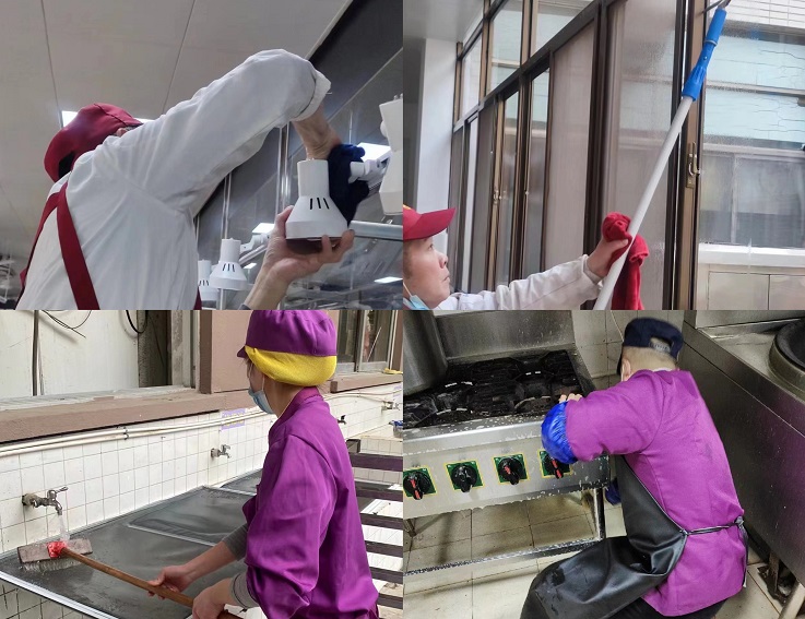 积极组织卫生整治,创建文明健康好环境。集团各中心划分责任范围,出动党员群众300余人,对教室卫生死角、公寓垃圾站、食堂灶台门窗、校园下水道等重要区域进行环境卫生集中整治,彻底清除卫生死角和杂物,清理积存垃圾,修剪校园树木,着力改善卫生面貌,营造美丽宜居校园浓厚氛围。
