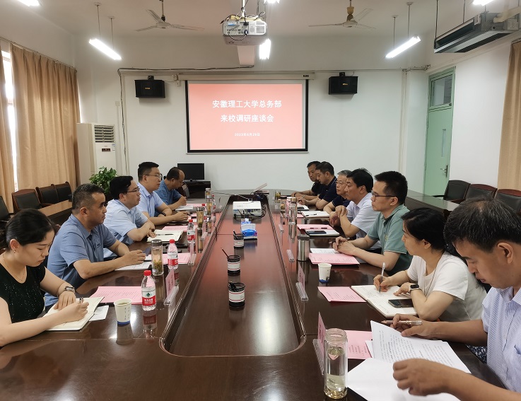 本网讯 6月29日,安徽理工大学总务部副部长(主持工作)林浩伟一行5人来我校调研交流后勤服务保障工作,后勤服务集团领导班子及相关科室负责人参加座谈交流。