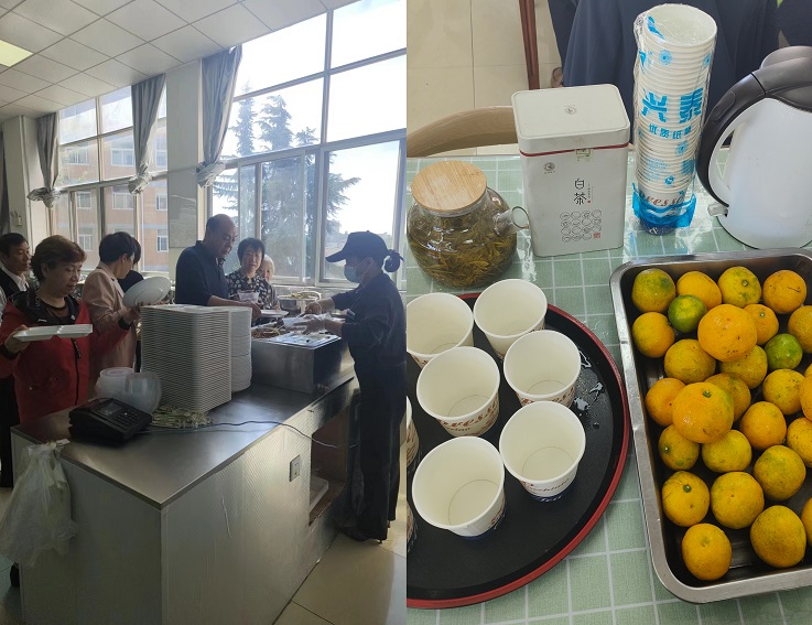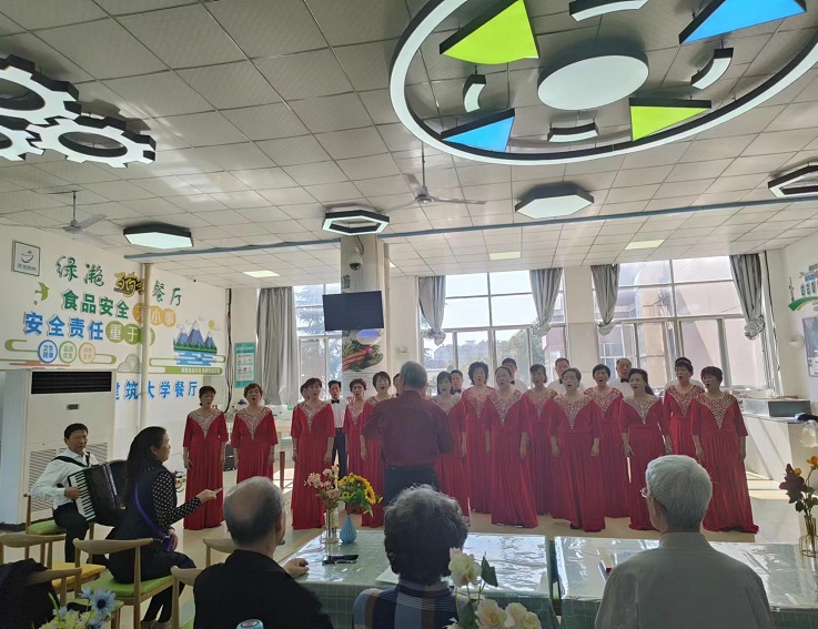 当天中午,退休教师们在北园二楼食堂集体用餐,他们在餐桌上欢畅地交谈,叙说着往日的教育情怀和各自退休后的生活,了解彼此身体、家庭状况,饭桌上时而响起欢快的笑声。饭后,食堂准备了茶水和水果,退休教师们以饱满的热情在食堂进行合唱活动,现场气氛热烈,充分展现了退休教师们积极乐观、健康活力的精神风貌。(文/图:程少聪;审稿:唐黎)