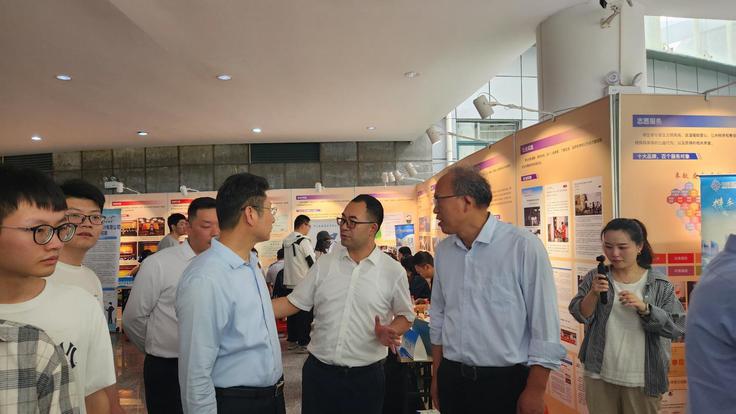 本网讯 5 月14日下午,阜阳校友会代表用人单位“安徽鼎圣控股集团有限公司”、“阜阳市建筑勘察设计院有限公司”、“安徽金钱豹建工集团有限公司”“安徽建苑检测科技有限公司”四家企业单位走进安徽建筑大学参加“安徽建筑大学土木工程学院2025 届毕业生专场招聘会”。校党委书记马文革亲临招聘会现场指导招聘工作,对阜阳校友企业予以充分肯定。土木工程学院党委副书记、纪委书记马智鑫,合作发展处副处长曹佰来,阜阳校友会副会长汪吉运,副秘书长车军参加招聘会。