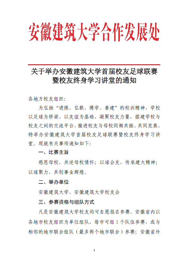 关于举办安徽建筑大学首届校友足球联赛暨校友终身学习讲堂的通知