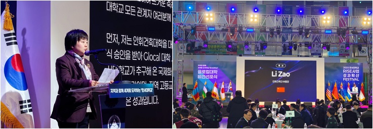 12月3日下午,作品展暨韩瑞 RISE产学合作成果交流开幕式在韩瑞大学泰安校区举行。李早教授应邀出席开幕式并致辞。李早教授对韩瑞大学的精心筹备表示诚挚感谢,高度肯定了两校长期以来合作在推动设计教育创新、培养复合型人才等方面中取得的显著成效,并展望未来双方能进一步分享教育和产学合作经验、传递文化特色,拓展更多元化的合作空间。